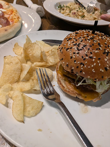 We would not have ordered burgers if we knew there were no fries. The chips were not the satisfying kind of chips. The burger was good but not worth $19 without the fries.