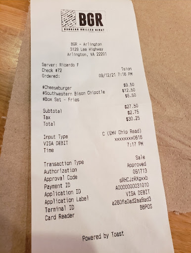 Read moreI recently visited BGR, and I must say, it's a gem of a burger shop! From the moment I walked in, the staff greeted me with warmth and friendliness, making me feel right at home. The burgers are absolutely phenomenal â juicy, flavorful, and cooked to perfection, easily some of the best I've had in town. And let's talk about the Old Bay fries; they're a must-try! Crispy, perfectly seasoned, and just the right amount of spice, they complement the burgers beautifully. As a military member, I was pleasantly surprised and grateful for the nice discount they offer, showcasing their support and appreciation for the military community. BGR goes above and beyond to deliver not just great food but also a welcoming atmosphere for everyone. I can't recommend this place enough â if you're in the mood for an incredible burger experience, BGR is...