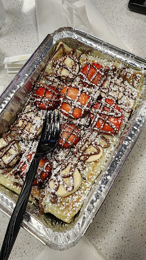 LIKE THAT Their Cookies & Cream Crepe ($12 a folded sweet pancake pastry with strawberries, bananas, Nutella, & powdered sugar). Definitely sweet, soft, warm, with the crunch of Oreo folded in the inside!! . Parking: ROUGH!! . The Inside: Quaint, & clean. . Recommendations: Everything is the same thing in different forms. Get the combo platter!! . Accessibility: It is wheelchair & differently abled persons accessible.