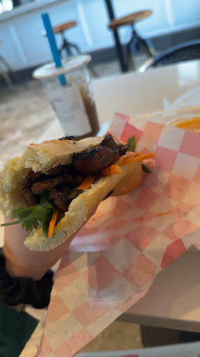 Read moreI’m obsessed with Vietnamese coffee and Banh mi. This Vietnamese coffee was definitely hitting the spot for me. It had the flavors and taste that I love. The barista was so helpful when I asked him questions. I highly recommend this place 10/10. The only thing I would like for next time is less ice as the ice to drink ratio wasn’t what I wanted but the flavors made up for it. I just wanted more drink and less ice. The pork banh mi was 8/10. It tasted great I just thought the bread could be better. I got it with the side of spicy mayo and that was delicious as well. The size of the banh mi was perfect for the price you get a big size portion. It was cut in half as well which I love so I can take the other half home and eat it later. Both places are inside the same space. There is lots of outside parking. You order at the kiosk and pay there as well. There is one...