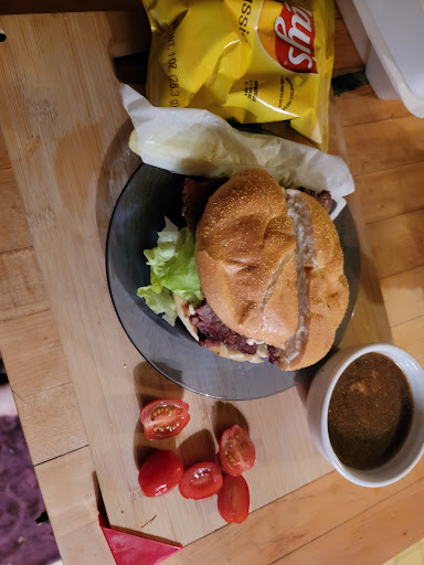 Updated August 2025 Chose the special Carolina Burger (not on regular menu) a wonderfully messy beef burger topped with coleslaw, onions, mustard, cheese and topped with Chilli. I chose to have the Chilli on the side, and glad I did because it tasted like canned. Without the Chilli, it was still a very tasty unusual burger which needs to be put on tne regular menu. The mustard pulled coleslaw and all the flavors together, into a very tasty dish. My dining mate chose the barbecue sandwich which was large, packed with juicy meat, with your choice of sauce on the side. It was deemed delucious. Both sandwiches were served with chips and a very tasty pickle spear. The server...