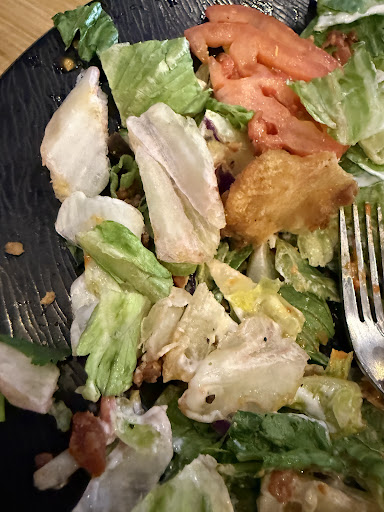 I ordered the Buffalo Chicken Salad, but requested Ranch instead of Blue Cheese dressing. I asked if it was homemade and the waiter said, it’s prepared at Corporate. So, I was like, ok, it should be good then. My salad arrived about 5 minutes after everyone else food, with the wrong dressing, it was Blue Cheese dressing. Had to send it back for the Ranch. By the time I got the Ranch and could eat, I noticed the white pieces of lettuce were dry/discolored/orange on the edges. The Ranch had a tangy flavor which I dislike. It tasted like store bought. Just to let you know if you like homemade ranch, this isn’t it. Probably one of the worst salad’s I’ve ever gotten in a sit down restaurant. The Buffalo Chicken was the only good part of the salad. The salad was $14.99 so, not worth it.