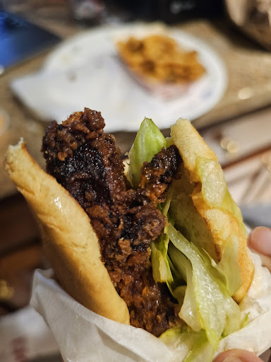 I happened to visit this place on recommendaction of a friend. I ordered Buffalo chicken sandwich/burger and she ordered a Jr cheese. Our order came very quickly it was like 6.30 pm and the shop had one other customer besides us. The burgers were reasonably good, spice was next to none in Buffalo but was a nice warm crispy tangy Patti,fries were good but on the salty side.However, the real problem kicked in with the 3 burgers I took home for my family. I ordered 3 fries 2 Buffalo same as mine and one no 6 which was a crispy chicken sandwich on recommendaction of the guy who was serving me. As soon as I reached home ,which is like a 20 min drive, I notice that the burgers are burnt. The patties were litterally like choclate .And husband's pattie was like coal. Fries were not salty but so salty that one had to spit it out. I was hugely disappointed, so rang the shop. I must have rang about 6 times but gave up as didn't have the energy to go back and drive 20 mins as it is past 8 now. Please look at the pictures and decide your self. I spent nearly 50 dollars on burnt burgers. No one deserves this. No one! Avoid bring food home at all costs. Try to eat in the shop so ypu can confront them when they burn your food. The girl who was making my stuff knew she had screwed up because she quickly put my stuff in bag and avoided eye contact. I DONOT RECOMMEND THIS BRANCH IN FALLS CHRUCH FOR TAKE OUT. Although, the dine in experience...
