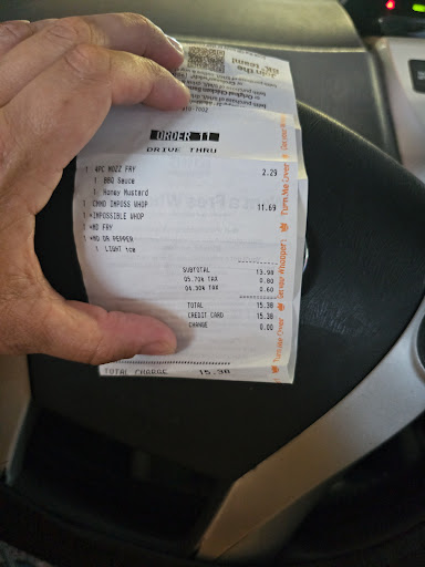 Worst experience ever. The food here has always been decent but this time it was worst. But what made me leave 1 star is the terrible customer service. I’m not sure if i came at a busy time or what but I came to grab something quick for my kids and I. While trying to get my kids order situated the person taking the order seemed to be in a rush and kept asking me was I ready mind you no one was behind me and he heard me getting my kids orders together. I got their 5 duo confused which was on me but once i understood i asked for a burger and fried for each and bc i have picky eater kids asked if no onions or pickles be on either sandwich . I got their whopper. I was asked if we wanted cheese on all sandwiches which i said yes and also got my kids and I each a cookie. I had to repeat the order a few times but after that I thought they understood.I paid for the food and then when i got my food noticed they missed a drink. The manager claim they didn’t and made me pay for a third. I asked for sauce and he tried to charge for that as well. I parked and noticed they left the topping on my kids sandwiches and forgot the cheese on all of our sandwiches, plus only have us 2 cookies. I had a long day and didn’t feel like going back in line to deal with the ride manager would help any just cause more frustration and we were all hungry so we just ate it and my kids removed their toppings. But this was the worst experience i have had at a fast food spot and that is saying alot. This location needs new management. The other 1 star reviews will attest to...