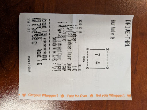 Lastly, ALWAYS check if they get your order right at this location now. I order a Whopper w/ Cheese no onions and received a Double Whopper w/ Cheese extra onion instead even though the receipt showed what I order. For those who have allergies, ALWAYS verify. I also ordered a Rodeo Cheeseburger recently and they put a small dab of BBQ sauce on the burger instead of a slight squeeze that lightly covers the bun like other locations. They seem to cut corners bad here.