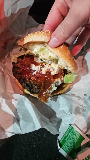This location is an absolute disaster. I've tolerated it a few times late at night and early in the morning, but today at 2 PM—well past any lunch rush—I sat in the drive-through for 10 full minutes and not a single voice came over the speaker. No cars in front of me. No acknowledgment. Just silence. I parked and went inside, only to find at least nine people waiting, clearly frustrated. There’s a giant touchscreen ordering kiosk—convenient if it actually worked efficiently—and this place doesn’t even accept cash, which is laughable. I stood there another six minutes watching chaos unfold behind the counter. At least ten employees back there, and not one seemed to know what they were doing. It was utter confusion. The drive-thru layout is embarrassing. The drive-through is wedged between a dumpster and a curve-and there’s a sign that says move this way, which has never worked, and the two drive-through windows look haunted. It’s barely functional. Even construction workers on their break gave up after ten minutes in line and walked next door to 7-Eleven to get a hot dog. I've avoided this place during lunch before, thinking the packed intersection was due to people desperately wanting Burger King. Now I realize it’s probably traffic from people fed up and leaving empty-handed. Every time I’ve managed to get food here in the past—morning or evening—it’s been wrong. This location is hanging by a thread. At this point, it either needs a complete overhaul or to be shut...