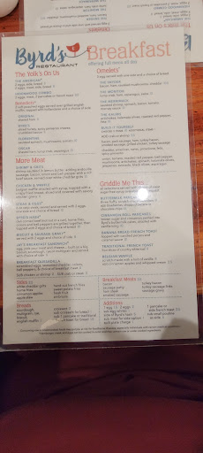 Byrds never misses the chance to exceed expectations. Late morning on Thursday of last week. I arrived seeking a table for two. Was greeted very nicely and very politely explained that there would be a wait. No surprise, there normally is but it's always worth it. So the rest of my party shorty arrived we waited and caught up with each other's recent events. And the 40 minute wait passed quickly. Please don't be put off by the long wait time. The food and service are worth the wait. Byrd's is very pleasant clean and airy space, family friendly and handicapped accessible so everyone will feel welcome. And the menu has something for everyone as well traditional breakfast favorites like eggs, pancakes,omelets. Lunch items of sandwiches soups. Well I have been hearing from many sources of the Rueben at Byrds. And that it was necessary to experience. So that was my order it arrived corned beef piled high topped with sauerkraut ,melted swiss cheese, russian dressing on toasted rye. Difficulty to open up wide enough for a bite! But I managed Mmm! Perfect balance of ingredients for the right flavor. A special thing about Byrd's is their approach towards table service you don't just get one server you get the whole team. One server may expertly assist you in your menu choices and take your order while another delivers your beverage and maybe a third delivers the meal while you're checked on by your original server and others throughout your meal for beverage refills or anything else you need. And the original server then brings you your check. Such a well oiled machine. And just a mention to parking there's plenty Byrd's is located in a shopping center so a large parking lot with many handicapped parking spaces. Go ahead, try Byrd's you might wait a lil bit but you...