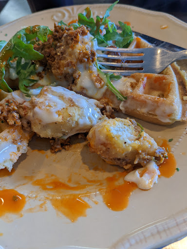 3rd. The food was not good. It was honestly, kinda gross. And I got the most basic one you could get "the country scramble" or whatever. Eggs, gravy and fried chicken on a waffle doesn't sound bad. But the chicken tasted like Tysons chicken after a long microwave. And frankly, these are separate meals combined into one. This is interesting, if anything its glutenous and lazy.