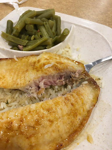 The food runner brought me my order. It looked beautiful until I cut into the Tilapia. The tilapia was raw right down the center. See picture.