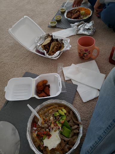 The food was not great. The nuggets were just regular Great Value type nuggets and the fries were stiff and flavorless. The kids tacos had about a taco's bell worth of meat on each taco and lacked flavor. My corn tortillas were literally crumbling and snapping as I picked it up. I am not an expert in corn tortillas or what they are supposed to feel and taste like but, they tasted kind of raw. It wasn't firm and the texture was this weird gritty/sandy as you chewed it? It was very unpleasant. The meat was even worst. Hard, dry, flavorless mess. It reminded me dehydrated string chicken. That is best description I could give it. The extra meal was unrecognizable. It was a meat covered in dull, lifeless grayish brown sauce. My husband's meal looked the best but the meat had the same issues as mine except, it wasn't as dry. Beans were okay.