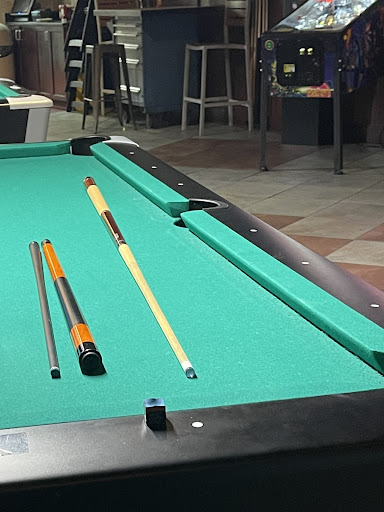 This is not a shooters room but fine for casual recreational players in my opinion and experience. Five pool tables are new 8 footers. There are more than twice that number of pinball machines. The business would be more aptly named CarPinball. No identifying manufacturer name plate on the pool tables but they are much lower quality than Diamond pool tables, that have become ubiquitous in poolrooms in the last 10 to 15 years, nor the quality of the timeless Brunswick Gold Crown model line tables that historically had been the workhorse of poolrooms since the model’s development in 1958. The tables are covered with wool cloth that is more often used on home recreational pool tables. I haven’t seen wool on poolroom tables since the 1970’s when worsted cloth (dominantly Simonis brand) began taking over. Pockets are buckets. But overall, tables appear to be well maintained and in very good condition by virtue of them being new. I don’t think they are durable for long haul commercial use wear and tear. Oh yeah, wool cloth pills and wears out fast.