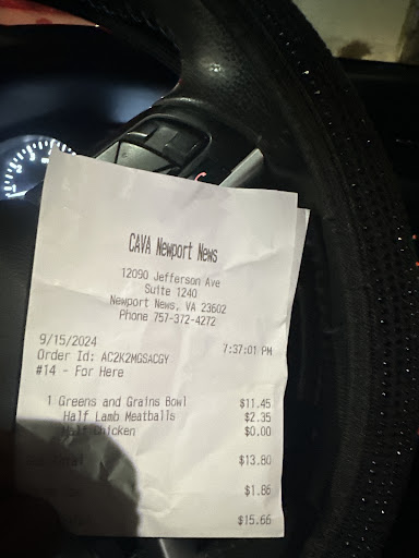 Read moreI was very disappointed for my 1st visit! I ordered 1 Greens and Grain bowl- chicken. I was eating my food and realized that I had just taken a few bites and all my chicken was gone & had more greens left with no meat. As you can see the time stamp of my receipt- I explained to the cashier like that was not a good serving. Since ,I had more veggies left, the she charged me for a side of chicken.. Well, I paid and she proceeded to go about her business and work, after standing there for a minute or so, I said excuse me ma'am may I have chicken! Cashier said Oh, I'm sorry I forgot. I spent $15.00 dollars and I will never eat here again. I see why I was not given enough protein with the 1st serving- the chicken was very dry and looked as it was sitting...