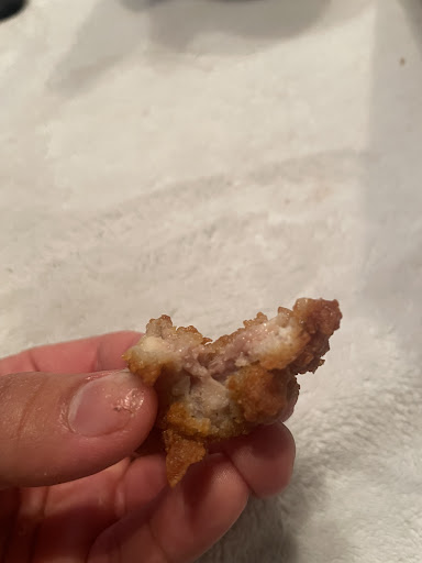 While eating her chicken nuggets, she noticed something was off. To our horror, one of the nuggets was raw inside—pink and clearly undercooked. The sight of it was upsetting, but the implications were even more disturbing, especially given that she’s pregnant. The risks associated with consuming undercooked chicken are serious, and this situation has caused us a great deal of worry.