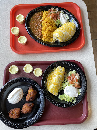 I like how you can order a la carte items too. Such as a single chicken enchilada which comes with sour cream, shredded lettuce and diced tomatoes. Their cheesy burrito platter is one of my favorites. It comes with a huge cheese-covered chicken burrito, rice, beans as well as lettuce and tomatoes. I prefer the yellow sauce over the spicy green sauce.