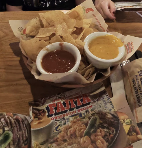 Read moreI'm sure I should have ordered chicken or shrimp fajitas or a chicken quesadilla. Instead, I chose a healthy meal - the Ancho Salmon - and wasn't that pleased. Some restaurants can really make good broccoli that can stand on its own, but this just wasn't it. I put butter, salt, and pepper on it, and that helped. The Mexican rice wasn't that tasty in my opinion either. I put butter, salt, and pepper on that, too, to help it out. The salmon was the best thing on the plate, but it was a bit overcooked. What they put ON the salmon was tasty; would have liked a bit more of it (that was definitely the best part of the meal). My husband said his chicken bacon ranch quesadillas tasted good. On a scale of 1 to 10, he said it was a 9! The friends we were with got a burger with jalapeño fries, and the crispy chicken crisper combo with mac and cheese - can't go wrong with either of those choices.