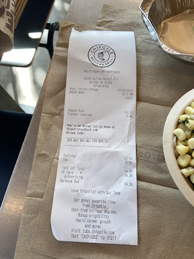 Read moreIf I could give this place -5 stars I would. I don’t know who the manager is of this place (it is a male) but they need to be fired. My boyfriend and I went here for lunch today, 8/5/2019, planning to use our gift card his dad got us. We got to the cash register and handed the girl our gift card and also asked if they do military discounts, she did not answer the question but said she would give us her discount in place for military. Our total before the discount was $20 and some change, when she added her discount it came to $15 and some change. We thanked her and she proceeds to swipe the gift card she called another girl over to help because, as she told us, their gift card machine apparently is not working. They enter in the gift card number a couple times and even swiped it a few times then told us again that the gift card machine is broken. That’s when they called, I’m assuming the manager, over to the register and he told us it’s not working, took our military discount AWAY and asked if we had another form of payment. WHAT???!!!!!?!? He said they do not do military discount AND THEIR GIFT CARD MACHINE IS BROKEN. Please tell me how that is our fault? So now we have to pay with a different form of payment, which we did not want to do, AND they took a discount for ACTIVE MILITARY AWAY, that was initially given to us. Not only that, but once the manager came over, the girl who gave us the discount acted like she didn’t know what we were talking about. This is nothing about the money but more about The customer service we received was HORRIBLE. Definitely will not be going back to this chipotle, or any others for...
