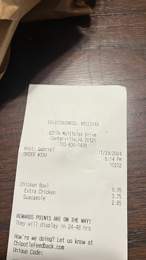 I ordered carry out for myself and my son. I even showed up after my pick up time. When I walked in I found the shelf where they keep the takeout orders. I did not see mine so I asked the cashier for help. Barely making eye contact with me he simply said it’s on the shelf. I told him I already looked there and I did not see it. He didn’t reply and took the next customer. I was just standing there and I had no idea what’s going on so I asked him. He told me somebody stole my it lol. So out of all the 20 meals that were sitting on the shelf, mine was stolen. Without any further explanation he just continued to stand there. He wasn’t even busy with another customer. I noticed there was a prep cook working on an order. Since I had no idea what the status was I looked at him and asked if she was working on my order. He responded yes lol. I understand sometimes it’s hard to communicate and make eye contact but he certainly didn’t have that problem when he rang up a customer ahead of me. Hungry and irritated I continue to stand there until the prep cook pretty much tossed my order to me. No eye contact from this one either. She was just rude; they both were and, no apologies were made. When I get home food I was excited to dig in since I was starving at this point and I love chipotle’s food. It was disgusting. The onions were soggy and limp and the meat looked fake? The meal was cold even though I just picked it up and the sour cream look like cottage cheese and was globed on. Honestly I was so hungry I didn’t even notice until several bites in. I was so disgusted; I threw the rest of the meal away. In other words I paid $22 for garbage service and food. I’m noticing a lot of bad reviews for this store. I’m also noticing no managers are acknowledging...