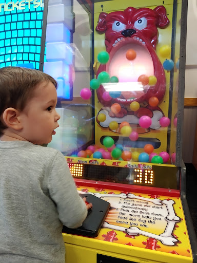 Anyway, I came in and was extremely disappointed in that, and especially disappointed in the customer service. We ordered a pizza and wings around 5:18 PM, and let's just say it was after 7 PM when I was finally helped with a refund because I waited 2 hours for my food—which I never received. I repeatedly walked up to the front to ask about my food, only to be repeatedly told by Faisel that it's coming out soon. But after a while, my son was cranky and tired and we needed to go. I couldn't wait around any longer and waiting around for 2 hours for food was already extremely generous. My son is a year old, so there isn't much for him to do there because he's too little for the arcade games.