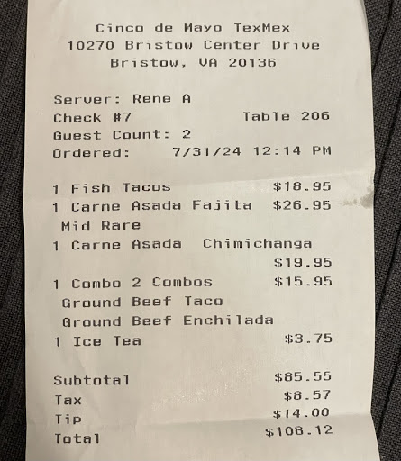 Took my family of four to Cinco de Mayo Tex Mex Grill ("Cinco") for lunch today and we all walked out delighted, full, and looking forward to visiting again and having a few margaritas with our meal. Also, for an evening meal, we'd very much like to try their ceviche and other appetizers.
