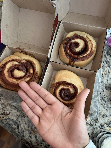 However, that's where my compliments end. The size of the plain cinnamon rolls for $6+ is disproportionate. Let alone $8-9+ for the ones with toppings. I ordered frosting on the side to make it cheaper because the cinnamon rolls were small. The height might be around 1.5 inches? Not only are they small but I also got rolls that weren't nearly similar in size. It feels like cheating when I'm given a roll that's much smaller than others.