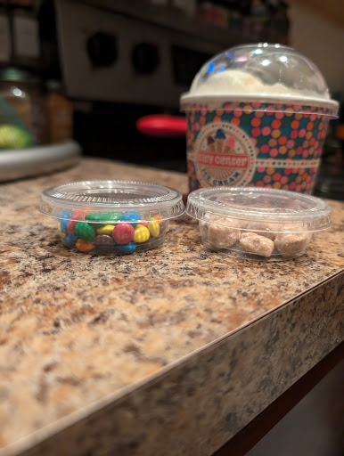 Also, we paid $1.00 per topping so I was expecting a decent amount. I couldn't have been more wrong. They were TEENY TINY portions. See pictures. But essentially I paid $1 for 11 pieces of cookie dough.