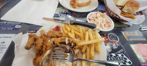 Read moreTo start... yes the wait staff is the best part of the restaurant! It is only 2 miles south of the Martinsville Speedway. After reading mediocre review on "trucker path" which indicated more than gristle steaks, I went in. I ordered the seafood platter. After asking a number of questions, my order of boiled seafood (with the exception or the frozen fried stuffed crab, was put in. My server came back to ask if I wanted the shrimp calabash style or butterflies. Asking the difference... calabash was like fried popcorn shrimp and butterflied was butterflied. My meal came out... The oysters were small than the ones you get from a can, the flounder filet was smaller than my hand( at home that size is used to catch bigger fish; I guess I got caught), I Don't if they were Bay or sea scallops but at a diameter of a nickel they were tender and sweet, the butterflied shrimp came out fried...prompting the question... why was I asked which kind of fried shrimp I wanted! Over all... the food better than "long John silvers" but it could be a whole lot better if it was fresh and not from "food service company" as I was told when I inquired about it. Hopefully drunk nascar fans don't care what they eat in...