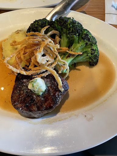 I ordered a Filet Mignon and my husband ordered the Trio of Medallions. I liked how the Filet was cooked, medium and the sauce was very good. But…I only ate half of mine and the waitress (first name starting with “Ste”) came by and said something like “would you like me to box it up”. Not thinking, I said “yes”, but she took it from me while my husband was still eating. And she also took away my wine glass which had a little bit of wine left in it. So weird. First of all, the proper etiquette is that the waitress should ask how the meal is, but not offer to take your food away while the other person is still eating. This is a nice restaurant but it turned “low rent” with a black bag sitting on our table while my husband finished his meal. There was a manager walking around pretty sure he saw the bag on the table. I almost called him over but didn’t want to make a scene.