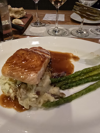 Read moreI am very appreciative of the management sending coupons to give the restaurant another try. I had a bad experience at the Reston location and decided to try Ashburn. I came in wanting to have a great experience, but again I was disappointed overall. Wine and food- The create-your-own-wine flight was amazing! This is something that you can't get at other restaurants in the area. This was a major plus. It allowed us to try 8 different wines and purchase a few bottles of our favorites. The food was so disappointing. The pistachio-crusted grouper absorbed the scent of everything in their refrigerator. It had a weird taste like it was left uncovered in their fridge for days. The Wasabi mashed potatoes were good but cold, and I would present them differently. They were scooped out like this was a high school cafeteria. My wife had the soy ginger salmon. Again the presentation wasn't very appealing. Their plates are too big, but I discovered something far worse. The sauce had formed a skin, was over-reduced, and was salty. Compare that picture to the new salmon and you can see the difference. The 2nd plating was also different. Why wouldn't you present and serve the best the first time? The second salmon was so much better. The sauce was fluid and you could taste the umami flavors. The salmon was buttery and crisp on the outside and moist on the inside. We had to go through two bad entrées to get to this good one. Service- It started slow. We were seated for approximately 12 minutes before we were greeted. He was very knowledgeable of the wines. I did have to get up to talk to him about the grouper which I sent back. There was another waiter who I spoke to first, but he didn't help at all. The gentleman did try to make things right and even gave us a complimentary dessert. He was empathetic and that goes a long way with me. I made sure I left him a large tip. I tried to give this restaurant a second chance, but I think this is the last time for my family. In northern va you have so much competition. The Great American Restaurants like Sweetwater Tavern and Coastal Flats are so consistent with their food and service. I think they are a little more casual, but still far better than...