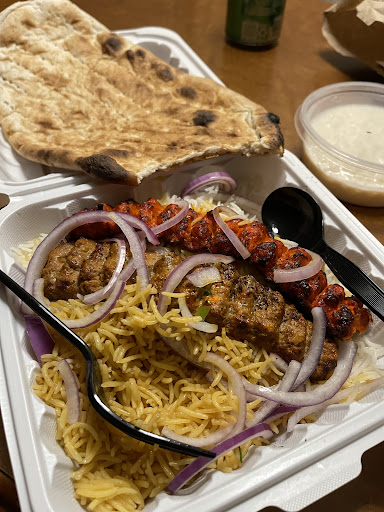 First time ordering, and got the lamb kabob. DUDE. It is perfectly cooked! I was a little wary cause I'm usually a die hard Kabob Palace fan, but this place gave me a perfect dinner with extra onions. The spinach is so good! Haven't checked the chickpeas out yet, but they smell amazing. Only complaint is we need a slice or two of cucumber or tomato to help even out...
