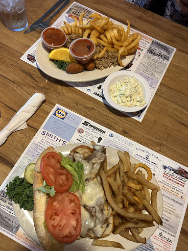 Read moreSo. We wasn't sure how to enter this restaurant. We tried the front and was successful. We were immediately introduced to a perfect temperature of about 68°...or so. It was refreshing because we were baking outside. An awesome young waitress greeted us next. She seated us immediately, told us the specials (tacos of all kinds) and took our drink order. She brought out our drinks and took the order next. The burger meal and crab cake meal came out shortly after. It was really good. The meals were cooked exactly like we ordered. They were hot and very affordable. So I got a BBQ meal to go for later. We will definitely be back. Lastly. I really need to comment on the waitress. She was all smiles. Very friendly. And helpful to first time customers. Service like that goes a long way. I'm sorry. I didn't catch her name. But she was super...