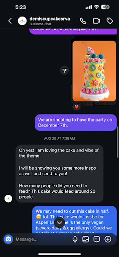 Read moreWe used Demi Cupcakes for our daughter’s birthday party (2024) and the cupcakes were good (vegan for allergies) and so was the customer service. We DM’d her on Instagram to use her again this year (2024) and she was incredibly rude when discussing the design of the cupcakes. I would highly recommend finding someone who is kind and not difficult...