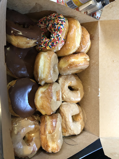 Read moreFantastic! Owner was very kind and accommodating. Very comfortable little cafe area with booths and seating area. EXTREMELY clean, including the bathroom. The donut selection was massive and fresh- I cannot stress how huge the apple fritters and cinnamon rolls are. The maple bacon donut was awesome; generous amount of fresh bacon- nice to eat a maple bacon donut that lacks that bacon bits quality of too crunchy and too old. The cruller was huge and the coffee was good. I should mention their coffee selection does not include crafted espresso drinks. They have hot drip coffee with flavored syrups, cold brew, and a cappuccino machine. I had the drip coffee with syrup and it was very good. Little dairy free creamer pods are also available. Very nice local alternative to chain...