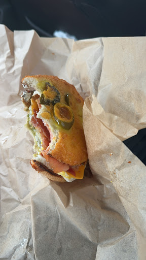 No seating inside. That's a shame. Very few people inside, but when I placed my order, it took about 20 minutes before getting it. And ultimately, it was wrong. When I ordered, there were clearly a couple of bagels of the kind that I wanted in the case. When I checked in with them about 20 minutes later, they said they had no more left. And that it would take 20 more minutes to cook them!