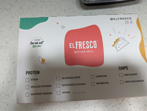 Read moreI enjoy the food from this place but the attention to detail is lacking on the service. I constantly ask for my burrito with potatoes to be cooked crispy as this location has the bad habit of mushy potatoes. The crispy potatoes are part of the reason I fell in love with El Fresco in the first place. I called and voiced my concern and spoke to a manager who offered me another order of potatoes cooked properly. I agreed and picked them up. I ordered a burrito this week and the potatoes were mushy again and I clearly put it in the instructions. Im not asking for the extra mile. Cook the potatoes properly or don't serve old potatoes! I am frustrated to my core with my experience and the lack of CARE shown by the team here. There is one gentleman who does work there that does follow the instructions and makes the food properly. He appears to be manager or shift leader. Aside from that, Most Of my experiences here leave me DISAPOINTED, MUSHY POTATOES...
