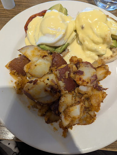 4/17/25 Had several meals here since the last review, and all experiences have been great. Yesterday for brunch, I ordered the Avacado Benedict with Breafast potatoes, and wow, it was so good. Creamy hollidaise sauce, over perfected poached eggs, and lots of sliced avacado on a toasted English muffin. Fantastic combination, great flavor, excellent service, and wonderful atmosphere. My dining mates agreed. Their choices of Classic Eggs Benedict and Avacado Toast were great as well. We all got the potatoes and deemed them perfectly seasoned and tasty. I still think the dishes are tad overpriced, but so is everything in these economic times. The friendly service makes up for that. It's definitely one of my favorite dining spots for all-day ...