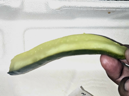 When I got home, I immediately started eating. I was hungry. The sandwich tasted wonderful, just as I'd expected it would. I bought the large size and wolfed down the first half quickly. Loved every bite. And then I started on the second half. A few bites in, I discovered a long piece of plastic string inside the sandwich.