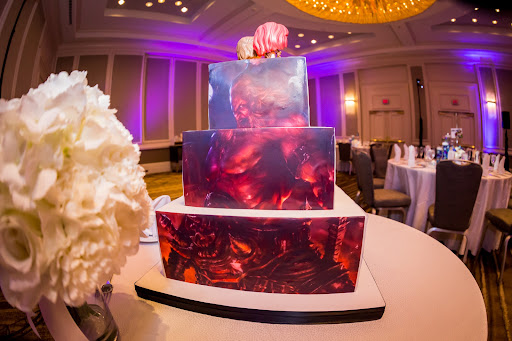 When we explained what we wanted our cake to look like, we were told that we can provide pictures of what we wanted and they would be printed on edible sugar paper at no extra cost. For 100 guests, our cake cost $1,000, plus delivery. We chose not to rent a cake stand; we were fine with the cake sitting on a normal cake platform.
