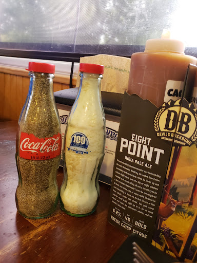 Condiments we had available on the table were ketchup, sweet and spicy sauce, cackalacky sauce, honey bbq sauce, malt vinegar, and Texas pete.