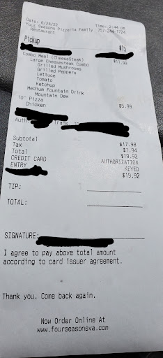 For my most recent order, he said he forgot to put the lettuce and tomato on it. But he had them on the side for me. I said ok np. There was no peppers or mushrooms on it. I went back in and he tried to argue with me that I ordered a cheesesteak and not a philly cheesesteak. Regardless I showed him my email recepit. He presumably put the things on it it was missing. I got back to my vehicle and looked. He put mushrooms and no peppers. I produced the actual printed recepit he gave me. He finally apologized and put the peppers on it. I am not sure why he finally admitted to being wrong with the printed recepit vs the emailed one. They were both identical. It doesnt matter which sandwhich it was. I never order any different from here. It is always ALWAYS the same sandwhich, same order. Always. I just reorder the previous order each time.