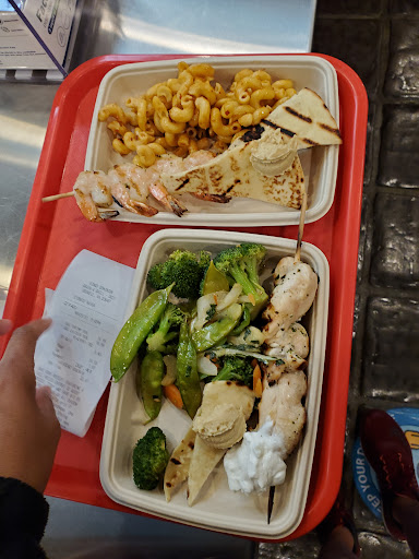 Read moreThe food was interesting. The sign says international... but its just Mediterranean style to me... It reminded me of a Zoes kitchen. All the options were great. My only issue was my food was cold. It seemed that the lights the food was sitting under wasn't keeping the food hot at all. The prices were steep but that is normal for a theme park. I ended up paying over $30 for 2 meals, and no drinks were included. Once you get your food you have to walk behind the register and out a side door which puts you in a small courtyard with tables to sit and eat your food... and the courtyard has a vendor selling alcoholic beverages to...