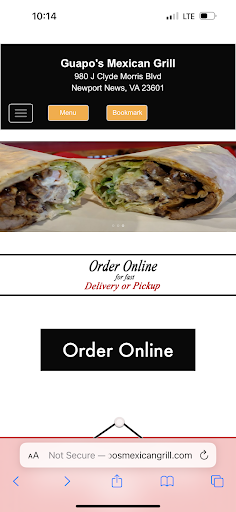 Read moreUpdate: I was able to dine in. Still excellent! If you're not a burrito person enchiladas pablanos are top notch! First dine in I asked which drink they recommended and that was the house margarita. It's ok. Not the greatest. If this were a head to head drink comparison Jose tequilas would win here. But it's not. And food wins out here! Now second drink I got the Milagro margarita and that was so much better! So if you're a margarita fan choose your tequila. Off you're a casual drinker you may like the house version just fine. But hands down best food! So good! Really! Just amazing. If you at all like anything remotely Mexican you will love this place. No taco Bell does not count that doesn't even compare, not in the same universe. Let's just be up front about that. Friendly staff. We wanted our order to go but weren't in a huge hurry. They let us know it would be a wait if 20ish min to make our food. The server made sure to ring it up to give us the best price. FYI Wednesday they have discounts on burritos. We ordered the brisket burritos. The guacamole fresco and a side of pico de gallo. But they also made sure we got our fresh chips and salsa as well. And our server brought us water in to go cups! Amazing! We didn't even have to ask! The salsa is smoky and spicy without being heavy on the cilantro. For me so good! I didn't try the guacamole bc of the cilantro but there isn't any left either so I'm thinking it was pretty good and hubs enjoyed it. Same with the pico. No left overs. That can be a downside though... Each bite just gets better and better so you keep eating even after you're full. Now the burrito is amazing! I'm not a huge fan of rice usually the texture puts me off but I wanted to try everything as is before modifying. And I'm so glad I did! They have a good rice to meat ratio and the textures compliment each other will. The other ingredients of the burrito balance everything out. So this was my first time there and based off of this, I need to go back for more! If they make their drinky drinks as well as their food I might as well move in! I did see a sign in the bar area that Monday thru Thursday from 3pm to 7pm is happy is hour. Also, I know it was only a couple of hours after opening but they were clean. Not just tables wiped down clean, but air vents were dust free, no dust bunnies under benches, nothing felt sticky. And even though the furniture has been around the block it was in good repair. I didn't see holes in the seats or benches. The new paint on the chairs and benches was in good shape, it wasn't scuffed up. The decor was very simple. One giant poster of the Guapo character they have on their t shirts, a TV, and a few informational signs. I'm so ok with that. I don't need to be distracted by busy art work on the walls. Do one thing and do it well for a restaurant and Guapo's does that. Next time we will dine in. There was plenty of space to distance out if you feel you need to. If you're wondering or slightly hesitant, go give it a try. You won't be disappointed!...