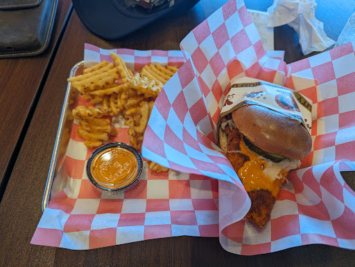 Read moreStopped into this shop after having fasting for 12hrs and getting blood drawn. So I was unusually hungry. Perhaps not the best time to take a risk on a new eatery. Fortunately I was pleasantly surprised by the Chicken Sando. Cooked at the time of order and served on a fluffy Brioche bun with a slice of pickle and slaw. This sandwich was a wonderful meal. Very hot upon delivery and the large butterflied chicken breast was moist. I ordered the spice level 'medium' and it was just about right for me. The spice made me squirm a little in the middle before getting to the slaw, but after hitting the slaw it was just right. The meal comes with waffle fries and a drink. the waffle fries, for me were a sometimes treat and today they were a very nice addition. They came with a little cup of dipping sauce. Although honestly, the dipping sauce added no flavor to the experience.
