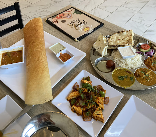 The dishes we ordered were Phav Bhaji, Naan, Aloo-Gobi, Pulav rice, Dry Gobi Manchurian, Paneer Butter Masala gravy, Rasmalai dessert, coffee, and masala chai.