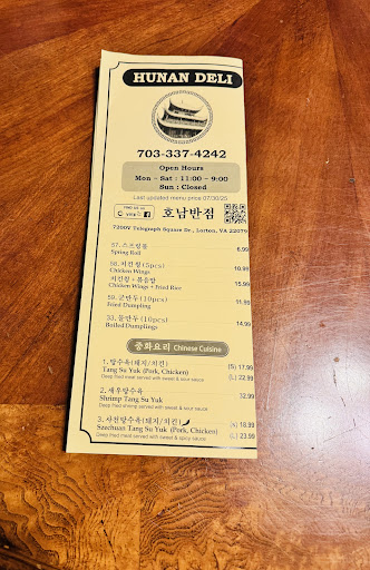 Read moreI was headed to Thai Box because it was close to Fort Belvoir on Memorial Day, but when we arrived to Thai Box, it was closed unfortunately. Hunan Deli was opened next door though, so out of desperation and hunger, we decided to eat here. I was strongly opposing it at first because before I eat anywhere, I always read reviews of restaurants beforehand, so I can get a general idea of what to expect. Once we entered inside, it looked exactly what you might expect from any Chinese take out delivery restaurant; poor decor and run down honestly. Also, there was a possible newborn crying in the back. The atmosphere was plain awkward. I felt regret already once stepping inside. But, things started to turn around when the food was ordered and arrived. I can't speak if the food is real Korean because I never ate real Korean food, but the food was delicious in my opinion. The prices are very cheap and you get way more than what you pay for. Overall, would I eat here again? Maybe out of sheer desperation and conveniences, yes, but with so many other restaurants around, I likely doubt I will...