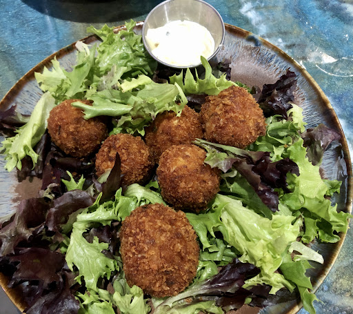 Avocado bites w/ homemade herb sauce - the herb sauce?? FUH-GEEET ABOOWT IIT! The avocado bites are deep fried and I have no idea how they fry it to keep the avocado nice - but it's a definite must try.
