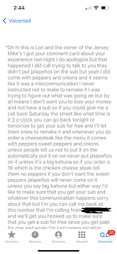 EDIT- since the owner responded trying to deny this, I have a voicemail from the owner giving a half hearted apology, here is the transcript of said voicemail. Why would I make this whole elaborate story up. She admits in this voicemail that she attempted to make me speak to her over the phone at the restaurant over a simple misunderstanding, confirms the misunderstanding I described, and denies telling them not to make a new sandwich so I guess it was just the employee. This owner, Lori, deserves no business. Pictures are of voicemail after Lori tried to deny this...