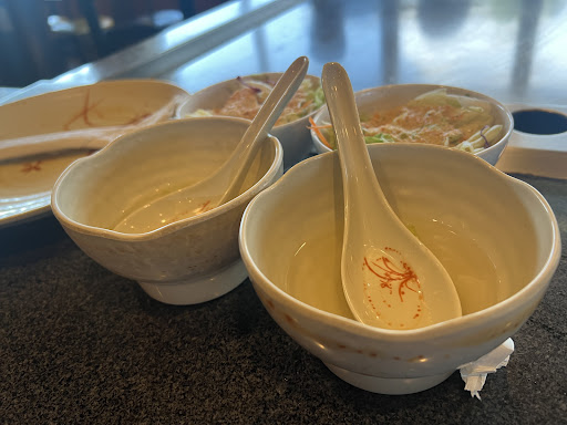 Now the food….So the person who seated us turned out to be our chef lol the show was entertaining. He seemed confused by what the waitress wrote down so he asked us a few times to verify what we ordered. But again the presentation was entertaining. The rice was sticky and had some hard pieces. The meat was doable. The miso soup was good and we really enjoyed the shumai and gyoza that we ordered. The salad was wilted but I enjoyed the salad dressing so that was a plus. My friend’s daughter enjoyed her sushi as well. The chef was generous when we asked for teriyaki, yum yum and ginger sauce. But I still felt like he rushed through our food. When we looked over to the table next to us their food just looked more fresh and rice fluffy compared to ours. We also realized that when our chef was cleaning the grill the grease had splattered into our bowls of yum yum sauce. That was upsetting.