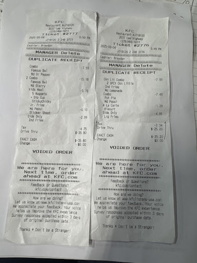 Read moreThis was the worst experience I have ever had at a KFC after having to wait for over 10 minutes without being told why we watched as our food gets handed off to someone else, that person complains and says the food is not theirs. And simply hands it back to the manager and which the manager herself takes the food walks back in the building turns around remembering that we were still waiting outside and just hands it to us and says oh I'm sorry. Also before we can make any comments to her she runs back into the building. At this point I do not know if the food is even safe to eat because we know the other person came in contact with the food and opened our food because we heard them say that they didn't order a pot pie I don't know if they had touched or if they had been wearing mask or even wash their hands recently. You would think that a company on a normal bases would know health regulations but what covid-19 running amok especially in my area you would think a manager would make sure to take the keep their people come to the restaurant safe.