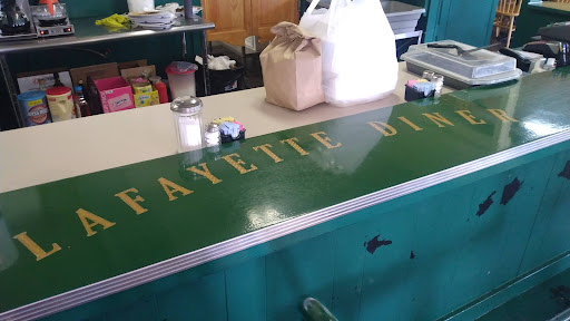 There is a reason there are always cars parked up outside the Lafayette - this diner is clearly a hit with the locals because its everything you hope for in a small, southern diner. It's not much to look at, but the food is plentiful and the service is absolutely wonderful. They don't make 'em like this anymore. Our server knew many of her customers by name and was exceedingly cheerful. The food is simple and filling. The coffee was hot and my cup was always full. I would have stuck with it until I saw our server come out with a giant Tupperware jug of sweet tea, which she said they brewed on site. Lord have mercy. I've been up in New England a long time, and that first hit of real, homemade southern sweet tea made my heart sing. There isn't anything fancy about the Lafayette -you get paper napkins and plastic cups - but its spotlessly clean, my omelette was delicious, and everyone else enjoyed their pancakes (although my Maine raised son observed they didn't have real maple syrup - who knew New England kids were maple syrup snobs). So if you are looking for down home cooking and great service, then stop in at the Lafayette. And whatever you order, make sure it comes with home fries, a biscuit, and the sweet tea - so satisfying! 9/10 would...