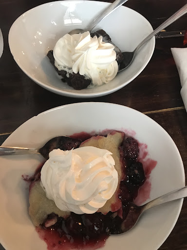 Fair price and attentive waitstaff. The hostess provided a warm greeting and quick seating. The atmosphere was pleasant and decor appropriately matched the theme. The Loaded Sweet Fries made an excellent entree, generously portioned and very flavorful. The brisket and pulled pork pit platters were also good with tender meat and the variety of sauce options acceptable. We only sampled 2 sauces, but both were a nice blend of flavors with some mild & hot versions. The Turkey Sandwich was a bit disappointing as it was basically a cold cut sandwich. The BlackBerry Cobbler and Brownie were both very good but it is a true travesty when hot deserts are served with soft-serve ice cream. Properly frozen hand dipped would have put both of these on another level. The soft-serve ended up the consistency of whipped cream. We enjoyed our visit and thought it was pretty good...